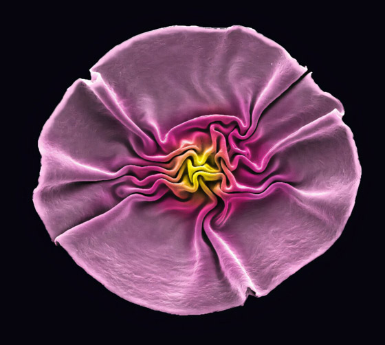 وأثناء اشتغال ذلك الفريق البحثي الجامعي بشكل روتيني، على الفيروسات الملتهمة للبكتيريا، اكتشف شيئاً غير متوقع ظهر أثناء شرائح عنها لتفحُّصها تحت المهجر. وقد فوجئ الباحثون بأنها شكّلت هياكل ثلاثية الأبعاد تشبه زهرة عباد الشمس، لكنها بعرض عُشرَين من الملليمتر.