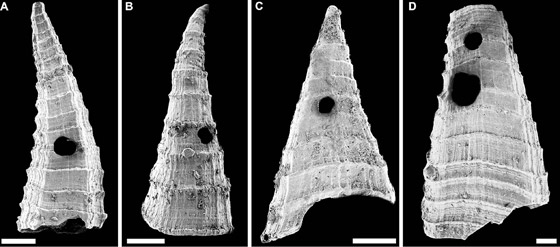 قامت حيوانات مفترسة غامضة بثقب أغلفة حيوانات دفاعية أخرى منذ أكثر من نصف مليار سنة، وتحولت بعض الأصداف المليئة بالثقوب إلى حفريات، وهي تخبرنا الآن بقصة أقدم معركة معروفة بين المفترس والفريسة، والتي أثرت على تطور كلا النوعين. ويوضح الباحثون أن وضع الثقوب ووقوعها في نفس النقطة تقريبًا في جميع الأصداف التي تم فحصها، وكذلك أصداف الأنواع المجاورة، يشير إلى أنها كانت نتيجة لعمل مفترس.