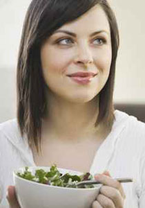 إذا تأخر العشاء، تأكدي من أن الوجبة تحتوي على نسبة قلويات أكبر، فمن المعروف أن الأطعمة القلوية تعتبر أسهل في عملية الهضم. تجنبي تناول وجبات تحتوي على اللحم أو القمح أو منتجات الألبان قبل الذهاب إلى الفراش بساعتين، حيث أن هذه الأطعمة الحمضية أكثر صعوبة في الهضم. تناولي وجبة العشاء مبكراً في المساء قدر الإمكان، وتأكدي أن وجبة العشاء تحتوي على كمية قليلة من النشويات. تأكدي من احتواء إحدى وجبات الطعام اليومية على منتجات القمح مثل المعكرونه والخبز. اكثري من استهلاك الخضروات ذات اللون الأخضر الداكن.