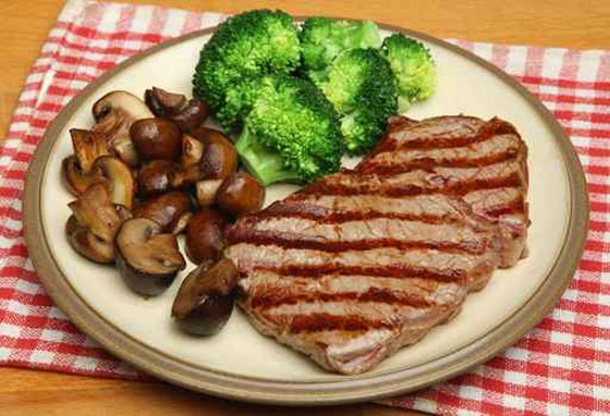 العشاء: شريحتا لحم بقري منزوعة الدهن لا يزيدا على250 جراما + كوب بروكلي أو ملفوف "كرنب" + نصف كوب جزر + نصف ثمرة موز + نصف كوب آيس كريم بنكهة الفانيليا "اختياري".