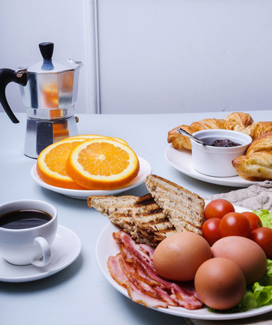 شريحة توست - ملعقة صغيرة من عسل النحل - نصف برتقالة – طبق خضروات صغير - بيضة مسلوقة - سلطة خضروات بدون طماطم - تفاحة - شريحة جبن شيدر - شريحة لحم مشوي - نصف كوب زبادي.