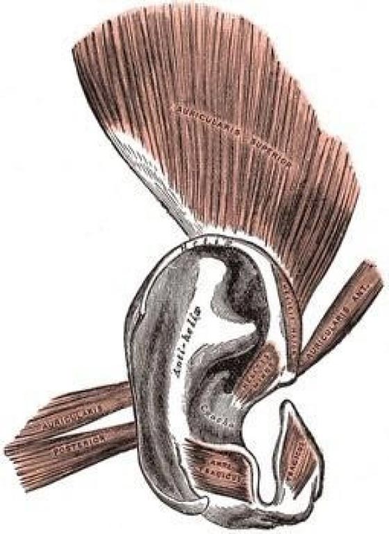 لا يزال البشر يمتلكون آثاراً لهذه العضلات، التي استخدمها البشر يوماً ما لنفس السبب. هذه العضلات لا تفعل شيئاً الآن، وتتحرك بصورة ضعيفة جداً، فكل ما يمكنها فعله هو هزّة صغيرة، استخدام هذه العضلات يظهر جلياً في القطط، فالقطط يمكن أن تقلب آذانها إلى العكس تماماً، وتستخدمها على وجه الخصوص عندما تريد مطاردة فريستها.