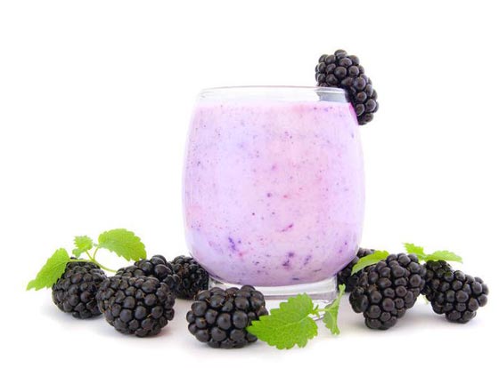 * المكوّنات: كوب من أوراق السبانخ الطازجة ونصف كوب من التوت البري ونصف كوب من التوت العُلّيق وثمرة من الموز ونصف كوب من حليب اللوز وملعقتان كبيرتان من الشوفان وملعقة كبيرة من العسل الطبيعي.