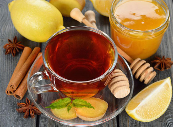 * اضف الماء المغلي الى ابريق وضعت به أكياس الشاي والقرفة. اتركه 5 دقائق وهو مغطى ثم اضف الليمون والعسل واستمتع بالمشروب ساخنا او باردا مع مكعبات الثلج. ثم يحرك ويقدم.
