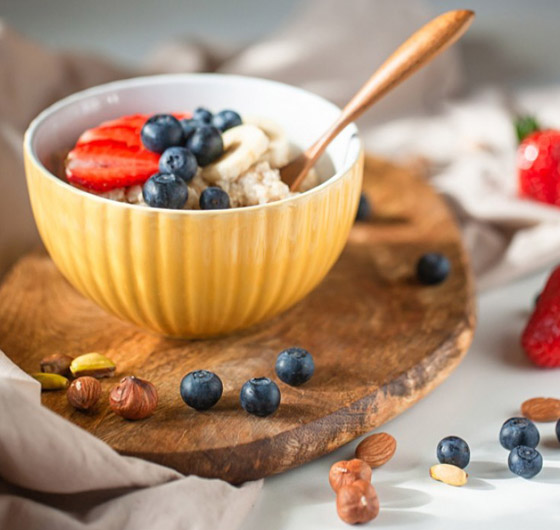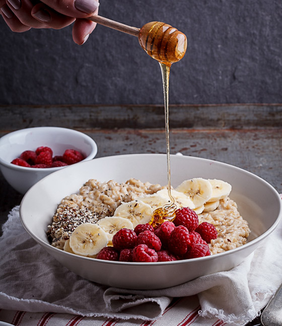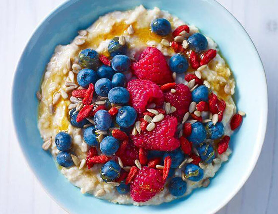 3. اسكبوا الشوفان في أكواب ووزعوا الفواكة عليه كما تشاؤون وقدموه دافئاً.