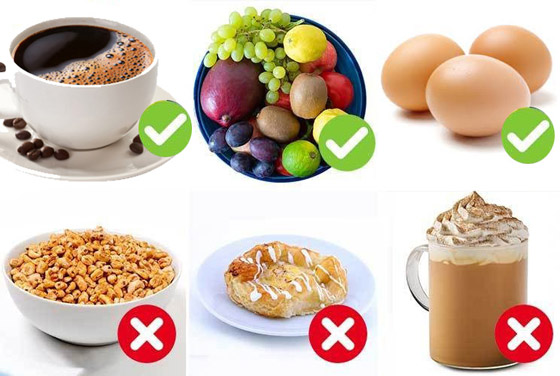 البيض: تناول البيض، بخاصة في الصباح، يزيد الشعور بالشبع طويلًا. كما يُساعد البيض في حرق السعرات الحرارية؛ إذ الجسم يستهلك المزيد من السعرات الحرارية لهضم البيض، مُقارنة بصنوف أخرى من وجبات الفطور.