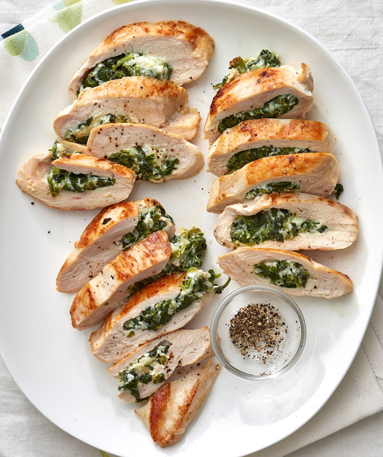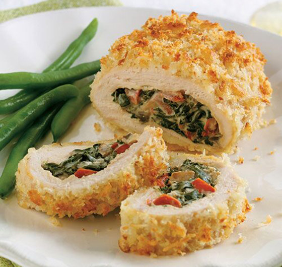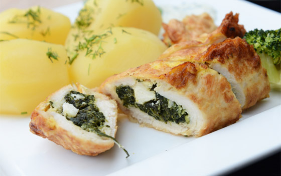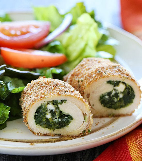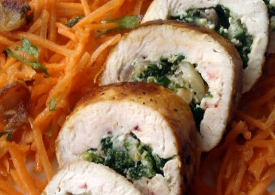 رولات الدجاج بالسبانخ والجبن للرجيم.. تمتعوا بطعم شهي ومميز جداً أثناء اتباعكم الرجيم لوصفة من الدجاج المحضرة بالسبانخ الشهي والصحي. وقت الطهي: 60 دقيقة.. يكفي ل: 3 أشخاص.