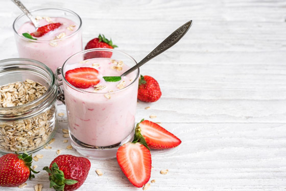 الزبادي المُنكّه: يزخر الزبادي بالبروتين المُشبّع الذي يبني العضلات، وبالـ"بروبيوتيك" النافع للبطن، وهو غذاء مُمتاز لفقدان الوزن. وتفيد مجموعة من الدراسات بأنّ الزبادي يمكن أن يقود إلى تحسينات كبيرة، على صعيد صحّة جهاز الهضم، وهو قد يساعد في محاربة أمراض القلب والسمنة. لكن، يجب اختيار الزبادي الزبادي العادي 2٪ أو كامل الدسم (الزبادي الخالي من الدسم أو قليل الدسم يخلو من العناصر الغذائيّة). بالمُقابل، يحتوي الزبادي المنكّه على الكثير من السكّر والكربوهيدرات. لذا، تُفضّل الاختصاصيّة أبو خير الزبادي العادي، مع إضافة القليل من قطع الفاكهة الطازجة إليه (بعض حبّات التوت الطازج، مثلًا).