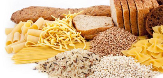 -حبوب الإفطار المصنوعة من الحبوب الكاملة ، والمعكرونة المصنوعة من القمح الكامل ، والخبز المصنوع من الحبوب الكاملة ، والشوفان ، والشعير