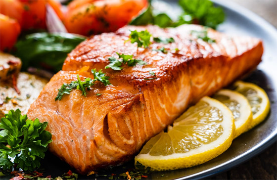 الأسماك الدهنية مثل السلمون تعد من أكثر الوجبات المعروفة بقيمتها الغذائية الكبيرة من الدهون الصحية المفيدة لصحة الجسم والقلب. ويحتوي سمك السلمون والسردين والماكريل والأسماك الزيتية الأخرى على أحماض أوميغا 3 الدهنية، التي ثبت أنها يمكنها بالفعل أن تحارب الالتهاب وتقلل من مخاطر الإصابة بأمراض القلب، وتساعد في فقدان وزن الجسم. الدراسة التي نشرتها مجلة علمية عام 2016 حول تأثير الأحماض الدهنية على معدلات الحرق أو الـMetabolism، أجرت تجارب خاضعة للرقابة استمرت ستة أسابيع على 44 بالغاً، ووجدت أن أولئك الذين تناولوا مكملات زيت السمك قد فقدوا نحو نصف كيلوغرام من الدهون، ولوحظ لديهم انخفاض في معدلات فرز الجسم للكورتيزول، وهو هرمون الإجهاد المرتبط بتخزين الدهون في الجسم.