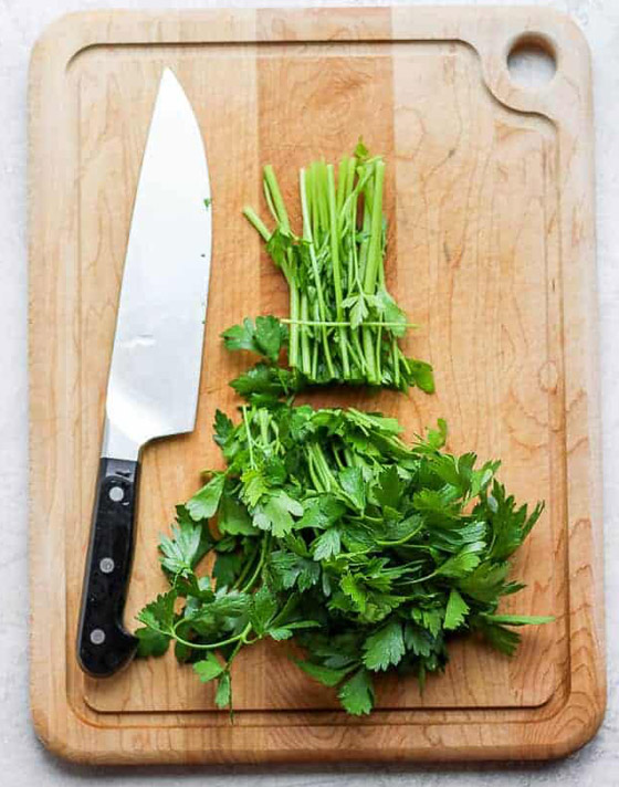 - 3 حزم من البقدونس المغسول والمقطّع.