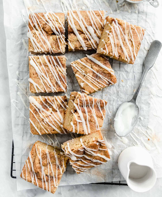 6. نخلط القرفة مع السكر ثم نرش القرفة مع السكر على الطبقة المخبوزة بواسطة مصفاة.
