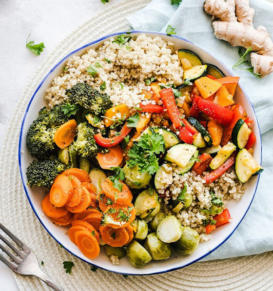 - الغداء: مقدار قبضة يد من المشويات، وطبق شوربة خضار.