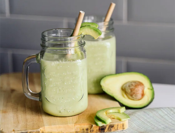 1- عصير الأفوكادو والتوت: هذا العصير النباتي يتضمن 3 أنواع من التوت (العنب البري والتوت والعليق) مع حليب الكاجو الذي سيساعدك في التخلص من تراكم الدهون مع إضافة نوع من البروتين المفضل لديك.