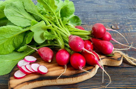 1. فجل: وفقًا لمراجعة علمية في دورية Nutrients، يمكن للفجل أن يساعد في درء مرض السكري نظرًا لقدرته على تقليل تراكم الجذور الحرة، وتعزيز امتصاص الجلوكوز واستقلاب الطاقة، وتقليل امتصاص الجلوكوز في الأمعاء.