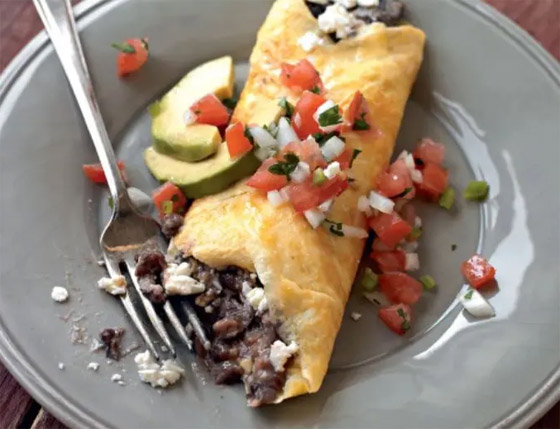 تحتوي وجبة الأومليت على كمية كبيرة من البروتين، والتي تقول يونغ إنها "تمنح الشعور بالامتلاء والشبع لساعات". إن الفاصوليا غنية بالألياف القابلة للذوبان، مما يعني أنها تُهضم بشكل أبطأ، مما يؤدي في النهاية إلى الشعور بالشبع لفترة طويلة. وفي دراسة نُشرت عام 2016 في دورية Food & Nutrition، شعر المشاركون الذين تناولوا وجبة غنية بالبروتين مضافًا إليها الفاصوليا والبازلاء، بالشبع أكثر من أولئك الذين تناولوا وجبة غنية بالبروتين مضافًا إليها اللحوم. كما كشفت نتائج دراسة أخرى، أجراها "مركز ويك فورست بابتيست" الطبي، أنه مقابل كل زيادة بمقدار 10 غرام في الألياف القابلة للذوبان التي يتم تناولها يوميًا، تنخفض الدهون الحشوية للمشاركين بنسبة 3.7% على مدار خمس سنوات.