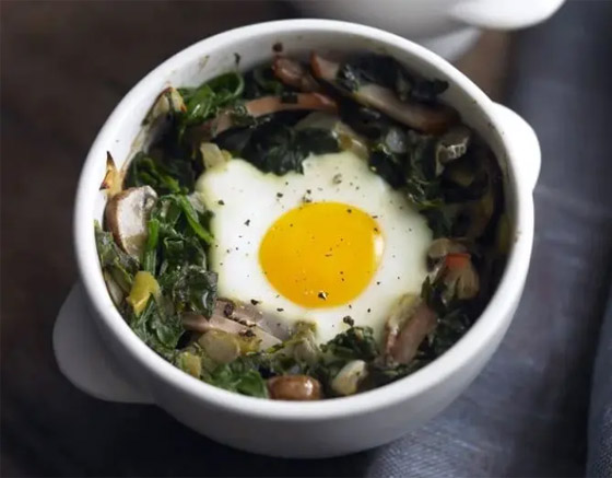 يحتوي طبق البيض المشوي المضاف إليه السبانخ والفطر، وهما مكونان رئيسيان يدعمان فقدان الوزن، مع تقديم وفرة من العناصر الغذائية وبسعرات حرارية منخفضة. يحتوي كوب واحد من السبانخ المطبوخة على أربع غرامات من الألياف، أي أنه يمكن أن يقلل الرغبة الشديدة في تناول الطعام ويحد من الإفراط في تناول الطعام. وفي الوقت نفسه، يمكن أن يساعد محتوى الفطر من فيتامين D على دعم جهود إنقاص الوزن، حيث ربطت أبحاث سابقة المستويات الأعلى من دهون البطن بمستويات منخفضة من فيتامين D. وتوصي يونغ بعدم إضافة أي لحوم إلى الوصفة لكي أكثر ملاءمة لفقدان الوزن على أن يكون البديل هو إضافة مزيد من الخضروات.