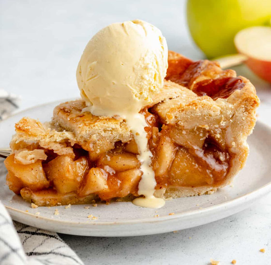 3. لتحضير الحشوة: في وعاء كبير ضعوا قطع التفاح، وأضيفوا النشا ثم اسكبوا عصير التفاح، ومن ثم رشوا القرفة واخلطوا المكونات مع بعضها البعض لتتداخل ثم اتركوها جانباً حتى تأخذ المكونات نكهة القرفة.