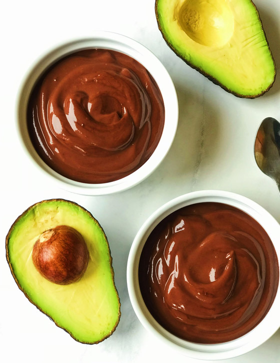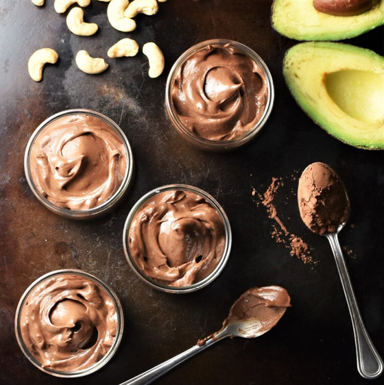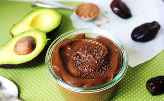 1. في الخلاط الكهربائي اخلطوا الأفوكادو، والكاكاو، والسكر البني، وحليب جوز الهند، والفانيليا، والقرفة جيداً حتى يصبح مزيجاً ناعماً.