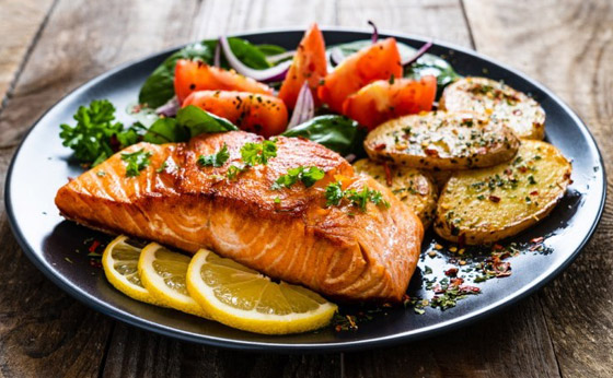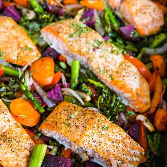 السلمون بالفرن مع الخضار للرجيم... نقدم لكم من مطبخ شايف وصفة غنية جداً بمصادر أحماض أوميغا 3 الدهنية والتي يُنصح بتناولها للحفاظ على صحة القلب، جربوا وصفة سهلة وسريعة من وصفات سمك السلمون الطيب والمفيد. وقت الطهي: 60 دقيقة.. يكفي ل: 4 أشخاص.