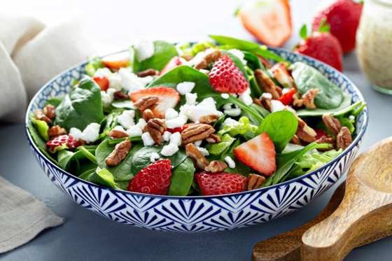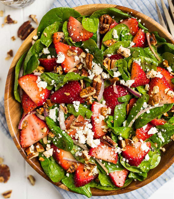 سلطة سبانخ بالفراولة للرجيم... نقدم لكم أطيب وألذ وصفات سلطات الرجيم المميزة على السفرة، جربوا طريقة مطبخ شايف بإعداد سلطات السبانخ الشهية، وتمتعوا بطعمها اللذيذ والخفيف بالفراولة. وقت الطهي: 10 دقيقة.. يكفي ل: 3 أشخاص.