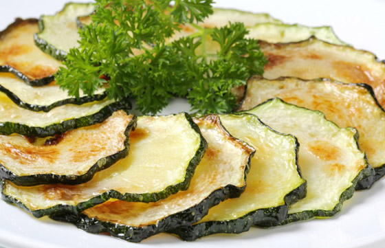 1. تبلوا شرائح الكوسا بالملح، واتركوها لبضع دقائق ثم بالمناشف الورقية نشفوا الماء الذي خرج من الكوسا.