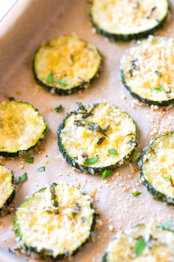4. ضعوا شرائح الكوسا على صينية المقلاة، ثم أضيفوا فوقها برش الجبن.