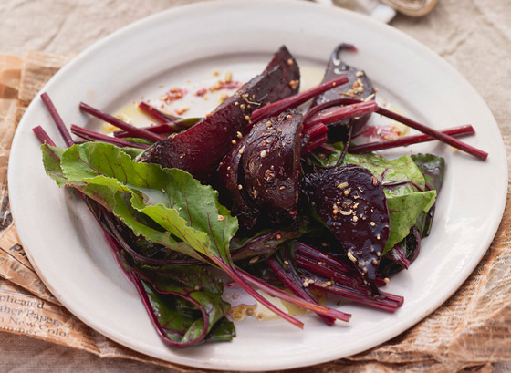1. بطّنوا صينية فرن بورق الزبدة، وضعوا بها حبات الشمندر، ثم إخبزوها في الفرن لحوالي ساعة ونصف حتى تنضج تماماً.