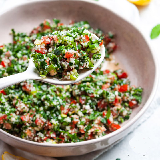سلطة البرغل لمرضى السكري وللرجيم... تعرفوا من مطبخ شايف على طرق إعداد وصفات وأكلات صحية منوعة وخاصة لمرضى السكري، جربوا سلطة البرغل الطيبة والخفيفة، وقدموها باردة على السفرة. وقت الطهي: 20 دقيقة.. يكفي ل: 4 أشخاص.