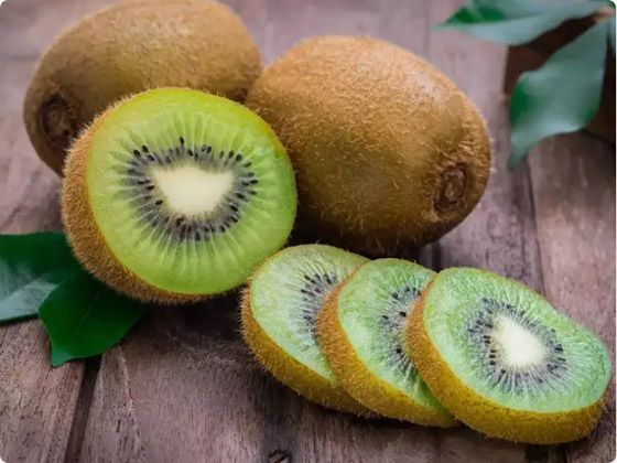 الكيوي غني بالعناصر الغذائية مثل فيتامين E ، C، وحمض الفوليك، والبوتاسيوم. ومن المعروف أن له خصائص مضادة للأكسدة ومضادة للالتهابات ومضادة لارتفاع ضغط الدم. وغالباً ما يوصى به لزيادة عدد الصفائح الدموية. ليس هذا فقط، ولكن تنصح النساء الحوامل أيضاً بتناوله. ويحتوي الكيوي على مؤشر منخفض لنسبة السكر في الدم (GI) وهذا هو السبب في أنه يمكن لمرضى السكر استهلاكه أيضاً.