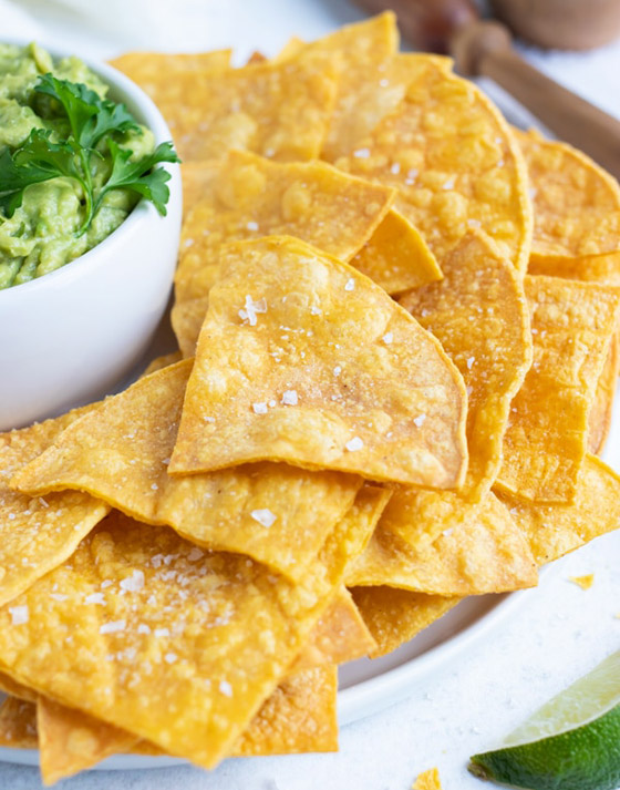 7. رشوا الملح واتركوا شيبس التورتيلا جانباً حتى يبرد وقدموه.