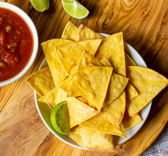 شيبس التورتيلا المشوي للرجيم... إليكم من مطبخ شايف، وصفة لذيذة من وصفات الخبز المكسيكي المشهور حول العالم، ويعتبر أيضاً من أنواع الخبز الصحي والمناسب لمن يتبعون الرجيم لأنه مشبع وغني بالعناصر الغذائية. وقت الطهي: 30 دقيقة.. يكفي ل: 5 أشخاص.