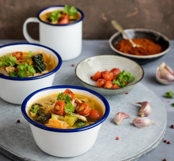 4. تبلوا الشوربة بالكركم ويمكنكم إضافة الزنجبيل المطحون بدلاً من الزنجبيل الطازج إن لم يتوفر لديكم.