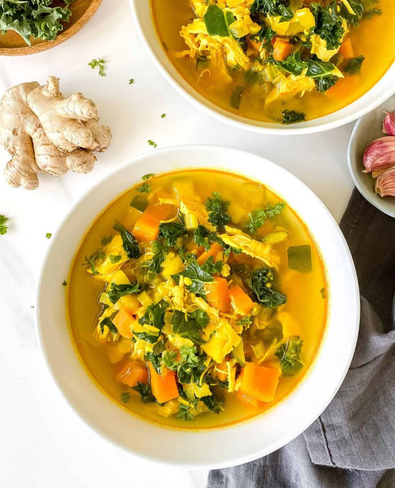 شوربة الزنجبيل مع الكركم الحارقة للدهون للرجيم... استعينوا بوصفات طبيعية مفيدة ستساعدكم على خسارة الوزن بشكل طبيعي، جربوا شوربة الزنجبيل مع بهار الكركم الحارقة للدهون، وتمتعوا بطعمها الطيب ساخنة. وقت الطهي: 40 دقيقة.. يكفي ل: 4 أشخاص.