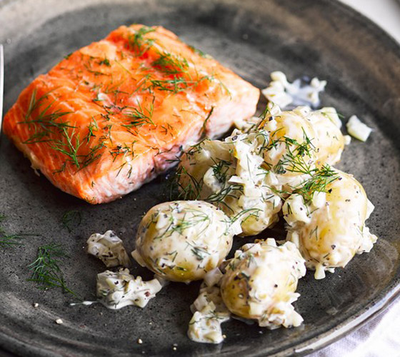 السلمون المطهو على الطريقة الإسكندنافية للرجيم.. تعد المأكولات البحرية والأسماك من أفضل أصناف اللحوم التي ينصح بتناولها أثناء اتباع الحمية.. اخترنا لك لوجبة رئيسية وشهية طبق السلمون المطهو على الطريقة الاسكندنافية لتتمتعي بوجبة شهية وخفيفة. وقت الطهى: 30 دقيقة.. يكفي ل: 8 أشخاص.