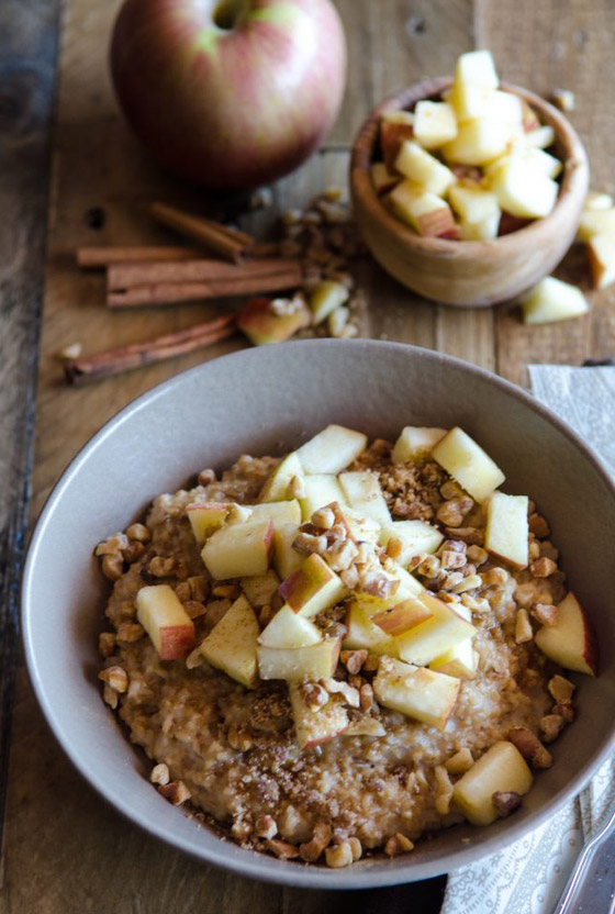 1. في قدر صغير على نار متوسطة، ضعوا الحليب واتركوه حتى يغلي، ثم أضيفوا الشوفان والتفاح المفروم.