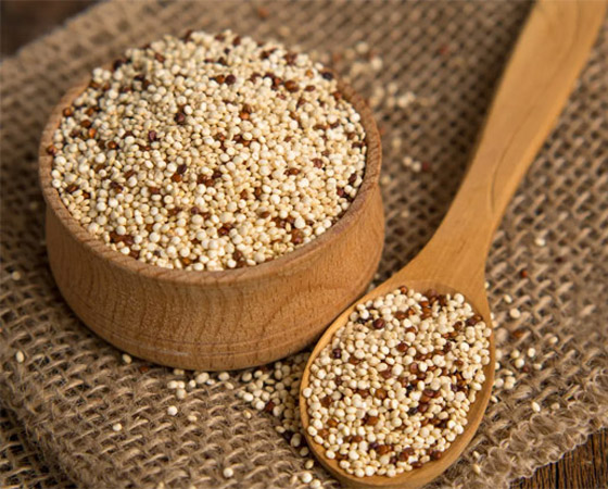 2. الكينوا: يُشار إلى الكينوا غالباً باسم "الحبوب الفائقة" نظراً لمحتواها الغذائي المثير للإعجاب. إذ يحتوي على جميع الأحماض الأمينية الأساسية التسعة، ما يجعله مصدراً كاملاً للبروتين. كما تحتوي حبوب الكينوا أيضاً على نسبة عالية من الألياف ولها مؤشر نسبة السكر في الدم منخفض، مما يساعد على تنظيم مستويات السكر في الدم والتحكم في الشهية.