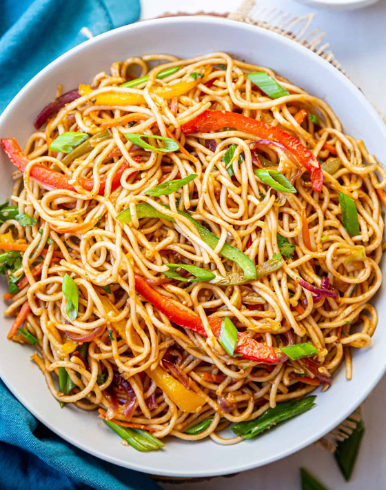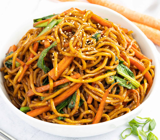 5. اسكبوا النودلز بالخضار في طبق التقديم وقدموه ساخناً.