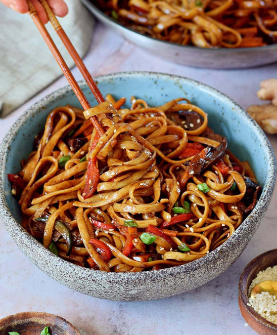 نودلز صيني بالخضار للرجيم... من الوجبات الصينية السريعة المميزة بمذاقها الخفيف واللذيذ وأيضاً بسهولة تحضيرها، تتبعوا السطور التالية وتعرفوا على طريقة عمل طبخات النودلز المخصصة لمن يتبعون الرجيم مع تشكيلة من الخضار الطازجة. وقت الطهي: 30 دقيقة.. يكفي ل: 2 أشخاص.