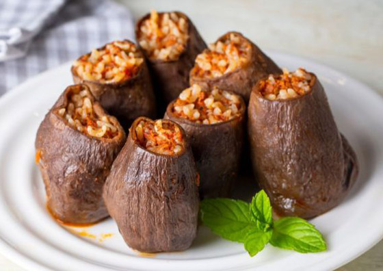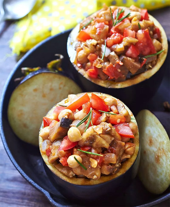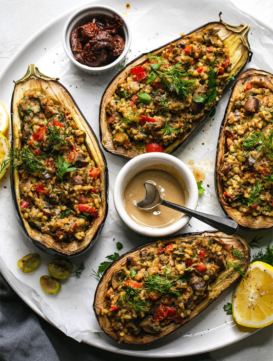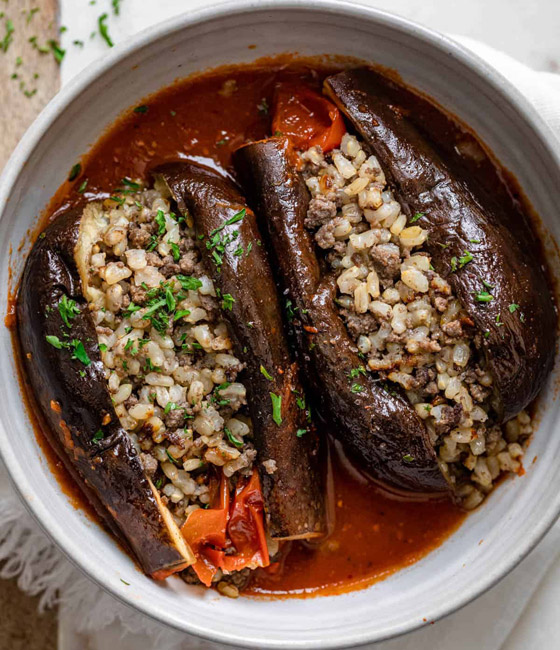 6. اسكبوا محشي الباذنجان في طبق التقديم، وقدموه ساخناً.