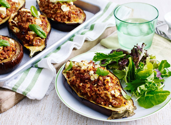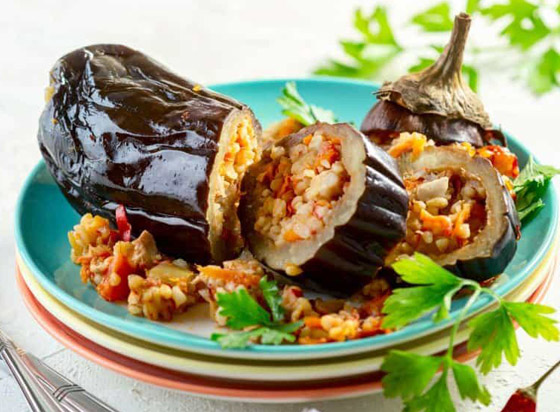 محشي باذنجان للرجيم... تلذذوا بمذاق وجبتكم الرئيسية من طبخات الباذنجان الطيبة، واستبدلوا حشوة الأرز بالبرغل الخشن، وتمتعوا بوصفة المحاشي المفضلة لديكم أثناء اتباع الرجيم. وقت الطهي: 60 دقيقة.. يكفي ل: 3 أشخاص.