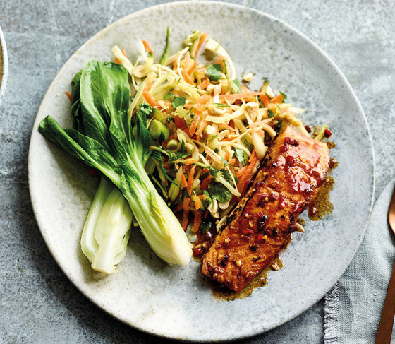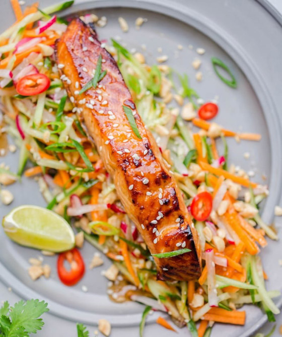 سلمون بالطريقة الآسيوية للرجيم... المطبخ الآسيوي غني بوصفاته المميزة من أكلات الأسماك والمأكولات البحرية، جربوا طريقة مميزة بوصفة من سمك السلمون اللذيذ خاصة للرجيم. وقت الطهي: 40 دقيقة.. يكفي ل: 2 أشخاص.