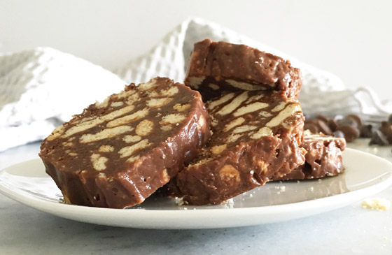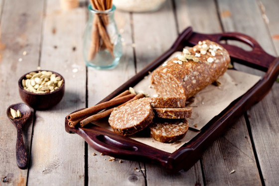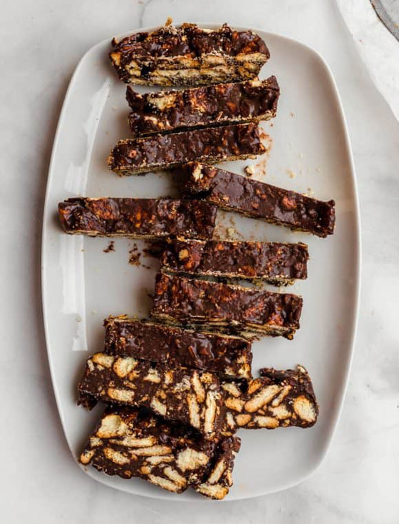 3. لُفوا البسكويت بشكل دائري في كيس مبطّن بورق الزبدة، ثم ضعوه في الثلاجة حتى يبرد، وقدموه.