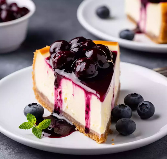 تشيز كيك بلوبيري للريجيم... تشيز كيك أو كعكة الجبن أو فطيرة الجبن هي حلوى مكونة من عدة طبقات. تتكون الطبقة السفلى من البسكويت والطبقة العلوية من الجبنة الكريمية. يمكن أن تُغطّى أو تُزيّن التشيز كيك بطبقة من مربى الفراولة أو التوت وغيرها. يعود أصل التشيز كيك إلى اليونان ويحضّر في معظم أنحاء العالم.