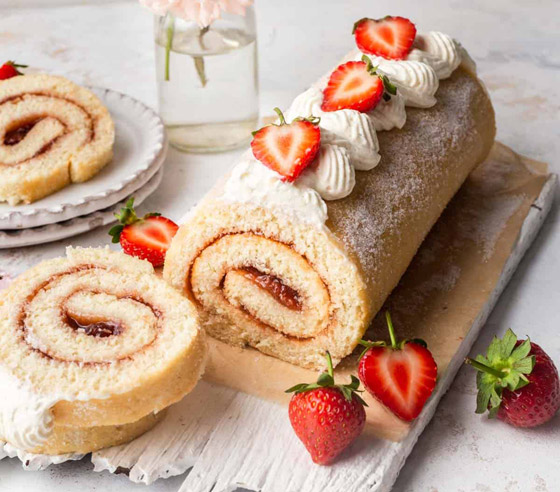 9. قطّعوا السويسرول لحلقات متساوية في الحجم، وقدّموه.