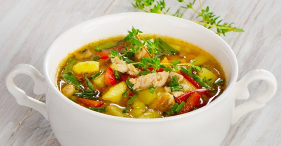 يقدم البروتين الخالي من الدهون من الدجاج مع مجموعة متنوعة من الخضروات حساءً صحياً يعزز الشبع وصحة العضلات.
