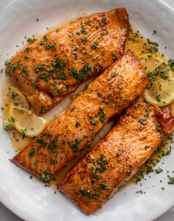 8. سمك السلمون: يحتوي سمك السلمون على نسبة عالية من حمض أوميغا3 الدهني، الذي يمكن أن يمنع الإفراط في تناول الطعام لأنه يساعد على الشعور بالشبع.