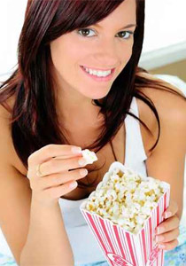 هذه الحبوب الكاملة من الذرة الصفراء رائعة كوجبة طعام خفيفة لمنتصف الليل. الذرة مصدر جيد للنشويات المعقدة، كما أنه فقير بالسعرات الحرارية (بشرط عدم اضافة الكثير من الزبد) ولانه فقير بالدهون فلن تستيقظ وبطنك منتفخة. تذكر بأن تتحكم في كمية الملح.