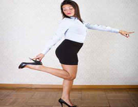 ومن ناحية أخرى، يمكن أن تكتفي السيدة بإرتداء التنورة مع بلوزة ضيقة عليها ويتم التركيز هنا على الحذاء اللامع ذو الكعب العالي والذي يظهر شكله واضح مع تلك التنورة المرتفة.