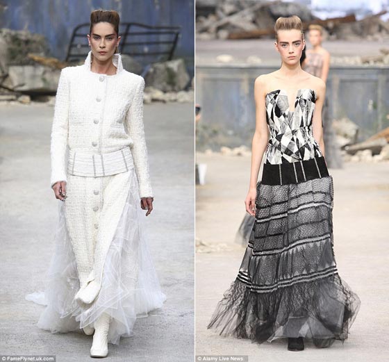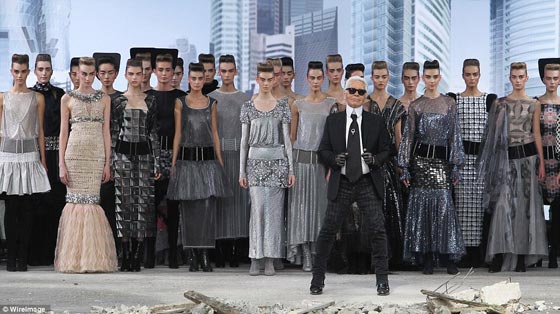 وعلى الرغم من هذا التميز لكل من مابيل وسيمونز باللون الأبيض الكلاسيكي أو الكريمي او حتى الأسود القاتم فإنها الاقل خلال العروض في شانيل، فقد قدم المصمم كارل لاجيرفيلد مجموعته المذهلة بالوان الفضة الصامتة والرمادي الحمامي، وذلك ضمن المجموعة المحدودة التي لم تتميز باللطف بل بطابع روح الانتقام مما أعطاها بريق مميز.